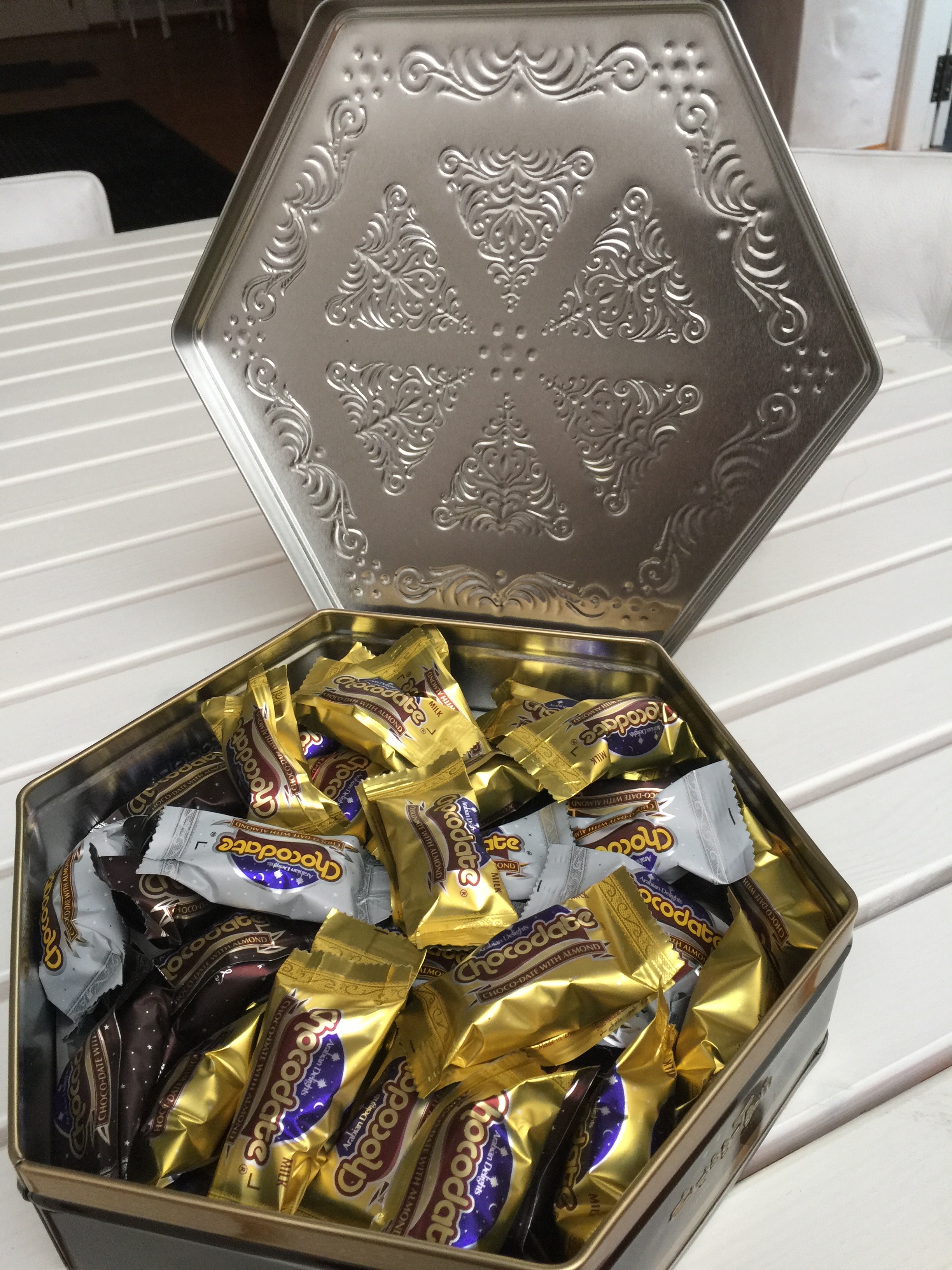 The highlight of the flight was the refuel stopover in Dubai. Just two hours filled with queuing and shuffling about withe the carry on luggage, but it did prove just enough for Michelle to purchase a tin of Chocodates. I had no idea why she was on a mission to buy them until offered a free sample. An almond wrapped in a date and dipped in chocolate. One of those kinda healthy intensely sugary hits. Bit of a thing in Dubai it seems.