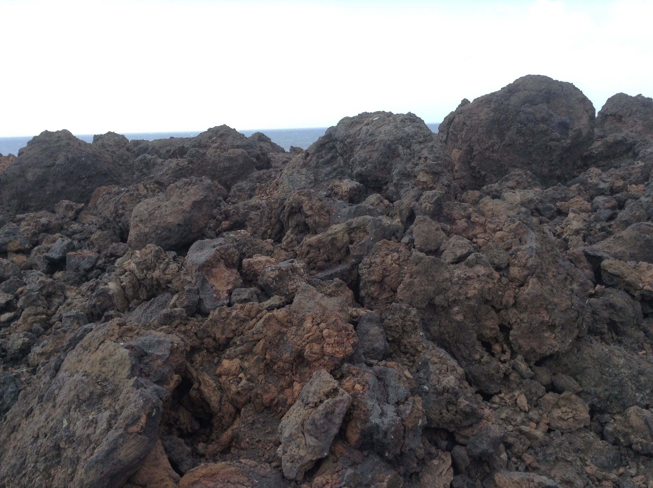 These volcanoes emerged in fissures in the land, once a wide plain perfect for grazing. Fissures bleeding rock, cleaving open as the pressure of the volcanoes beneath forced their way above ground. This is what I have read and imagine, a primordial groaning, perhaps deafening, definitely terrifying, apocalyptic. Livestock asphyxiated, fish boiled alive, the ocean steaming, the island showered with volcanic ash and smoke. You have to know all this, to appreciate the place as it is now. But it is still impossible to take in.