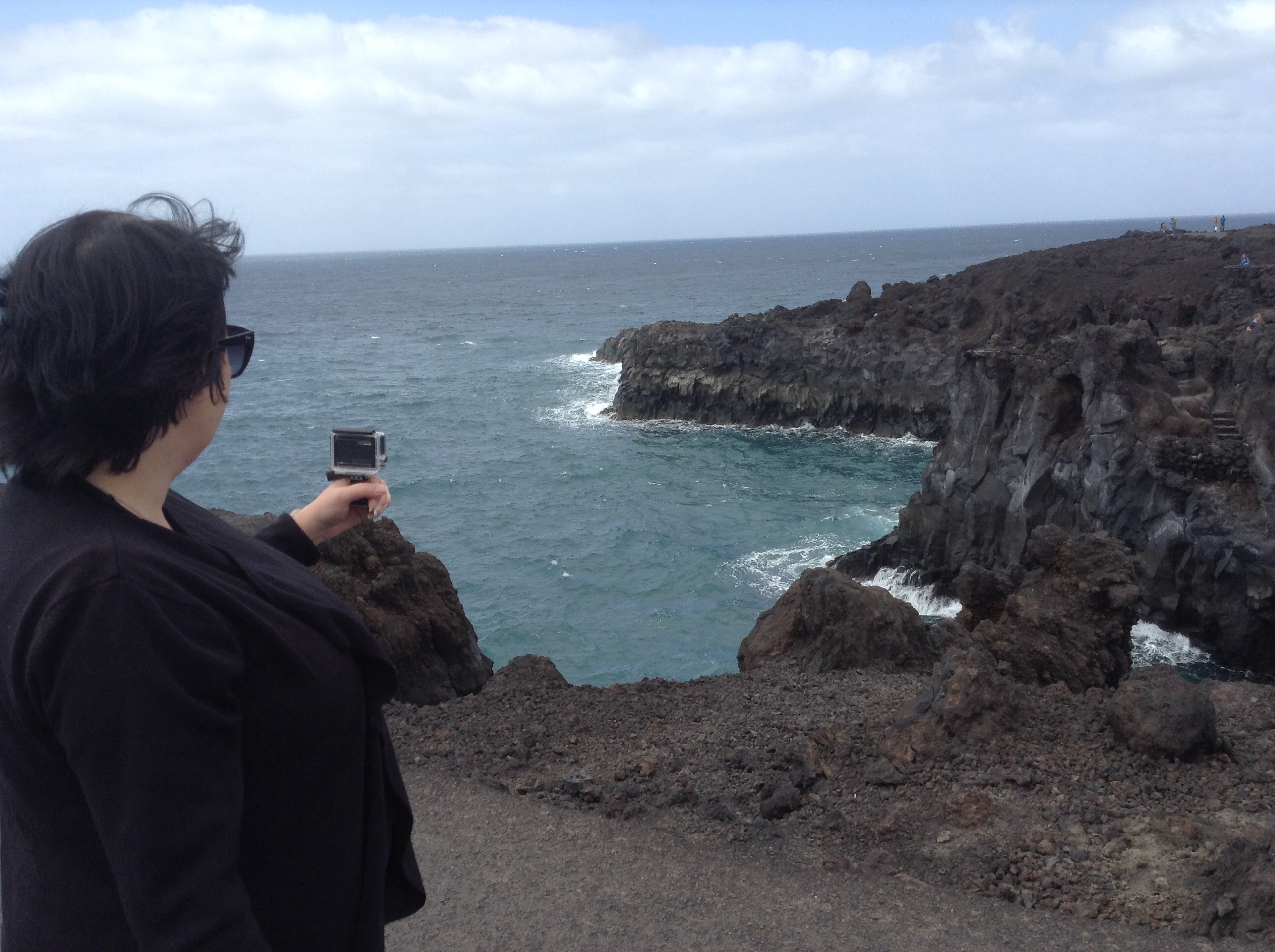 We parked at Los Hervidores, a site of extraordinary beauty, where narrow basalt paths have been created to allow tourists to get close and see that meeting of rock and water. The basalt is many metres thick, chunky, descending in a vertical cliff. The ocean swells and surges, blue on black, sending forth its spume. There are holes in the lava, like wells, places to get soaked when the ocean is angry.