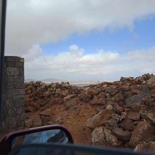 I was agog the whole trip, drawn by sweeping curves, the sensuality of the landscape. Fuerteventura brings out the artist in me. I am sure if I lived here I would draw and paint. My photos cannot do justice to the scale, the atmosphere and the incredible silence of the island away from the tourists. Juan pointed out the ruins of aboriginal dwellings – little more than small circles of stones that were once huts. We talked and talked and my head bursts with fresh knowledge of the special culture of the indigenous people, the dark history of the Spanish overlords, and the lack of will of modern day governments at all levels to preserve the integrity of Fuerteventura and value it as so much more than a lot of dry dirt to be built on so that more and more can dip their toes in the ocean.