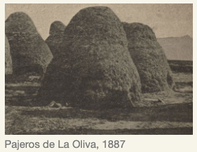 I couldn’t find a photo of grain stacks on Lanzarote. The above image is taken from Stone’s book and depicts the grain stacks in La Oliva, Fuerteventura. (p 346) She also writes: